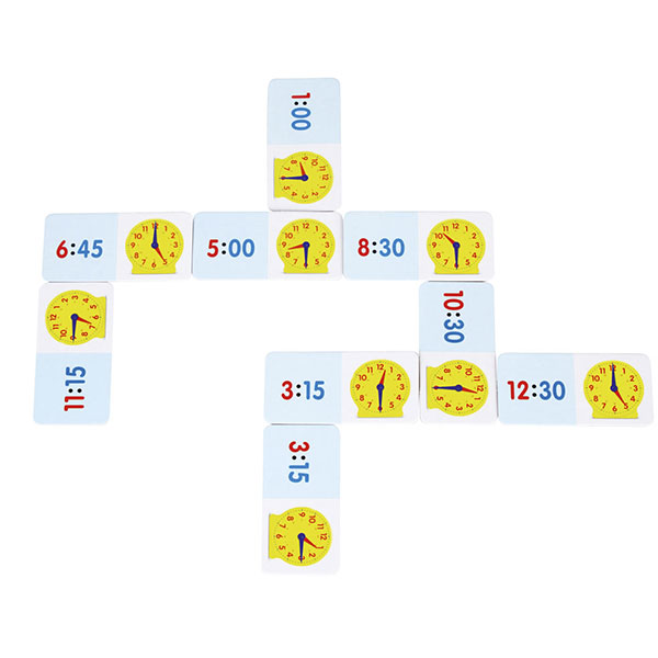 Caixa de jogo educativo Time Dominoes para reconhecimento de horas