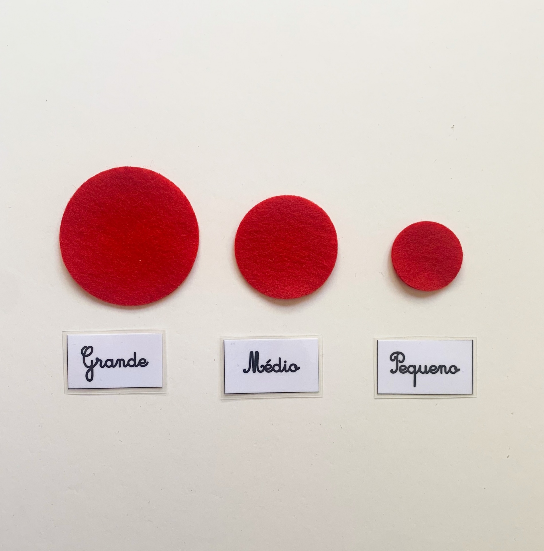 Kit de actividades para associação de cores e diferenciação de tamanhos.