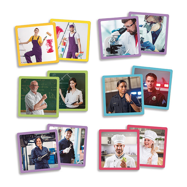 Jogo de memória com 34 cartões para trabalhar os valores da Igualdade, associando pares de profissionais. Uma forma divertida de exercitar a memória, a atenção e desenvolver o sentido de Igualdade entre géneros.