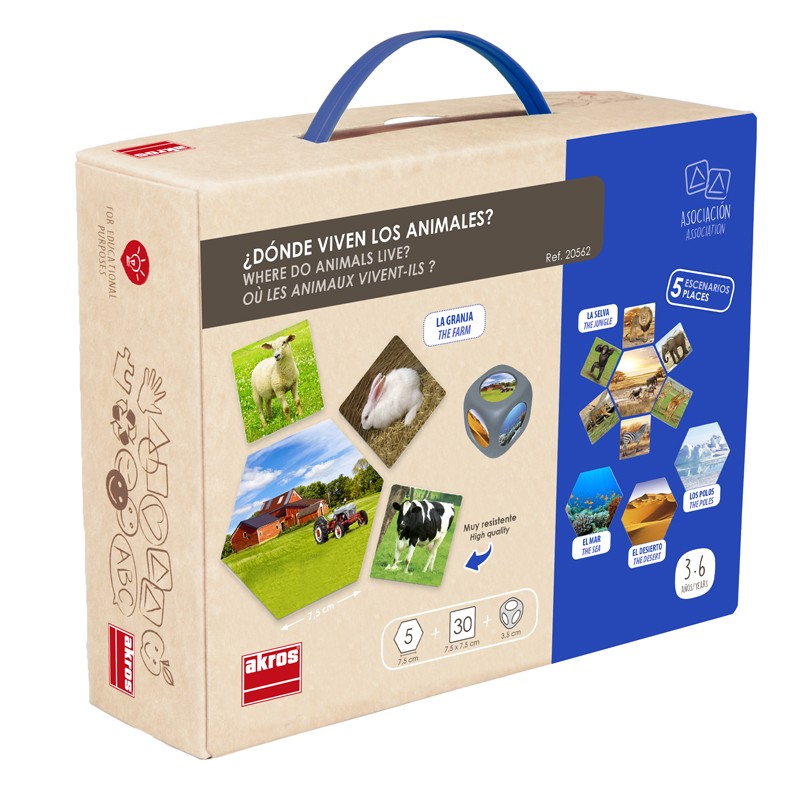 Jogo de associação para aprender de onde vivem alguns animais. Todos os elementos do jogo têm imagens reais.