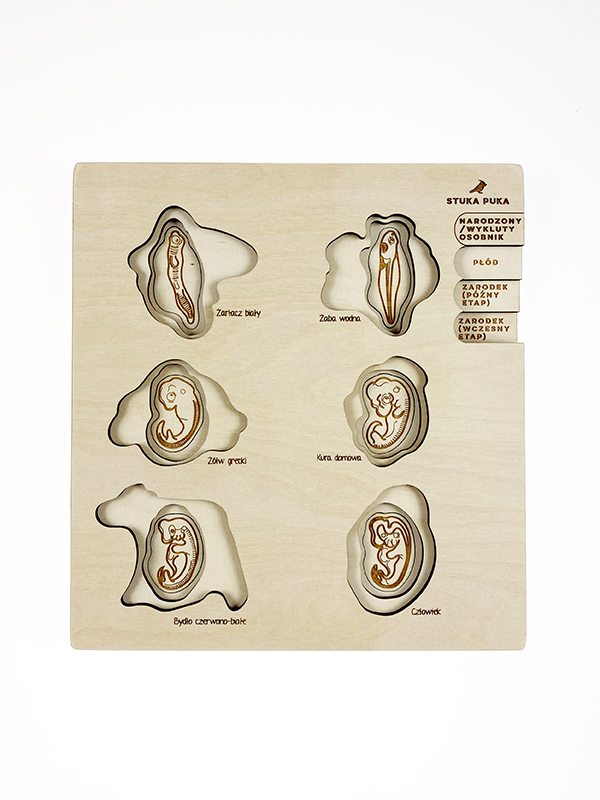 Descobre como se formam e crescem os embriões de 6 espécies com este fantástico puzzle em madeira de 4 níveis da Stuka Puka.