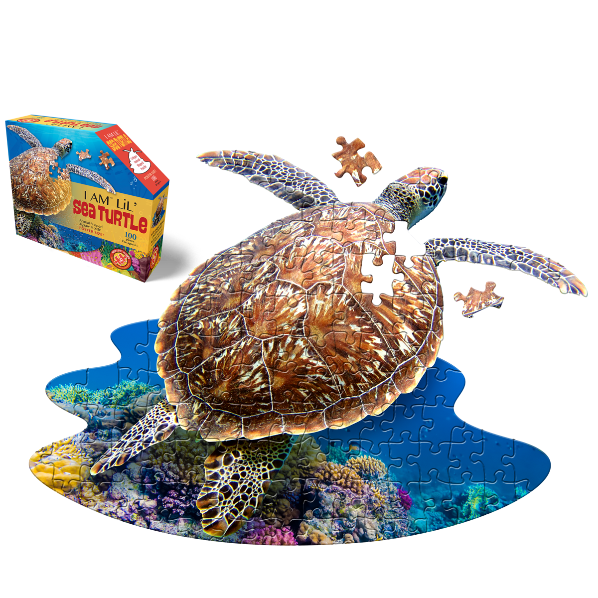 Caixa de puzzle com tartaruga-marinha e texto I AM 'LIL' sea TURTLE, 100 peças poster