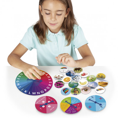 Com as crianças mais pequenas, pode começar a jogar com as imagens e a roda dos temas. As crianças familiarizam-se com as cartas e descobrem o nome de cada imagem. A seguir, introduza a roda das sílabas para desenvolver a consciência silábica. Isto ajuda as crianças a segmentar mentalmente as palavras nas imagens.