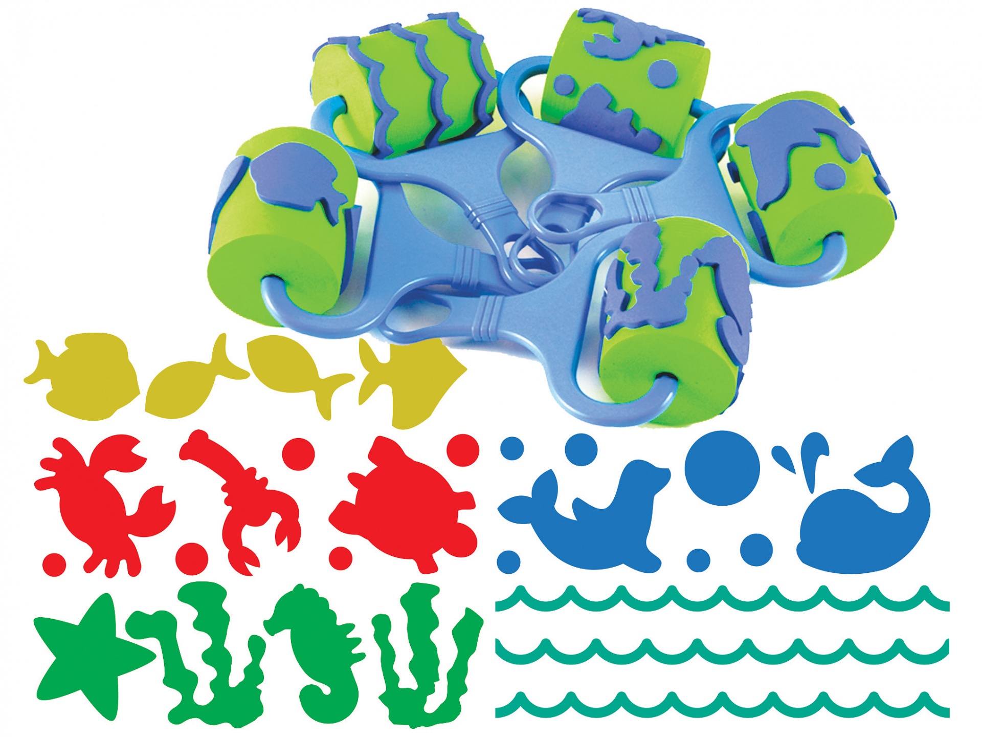 Carimbos de espuma coloridos com temas marinhos e formas recortadas coloridas